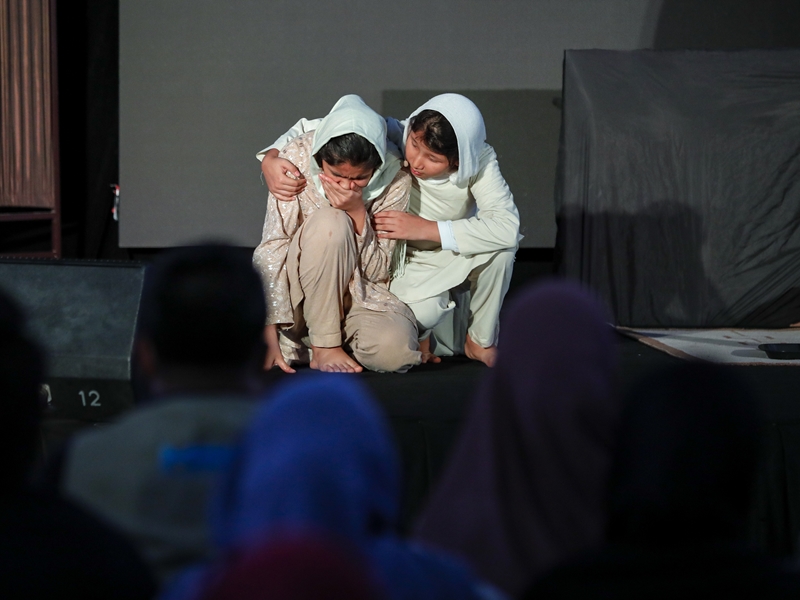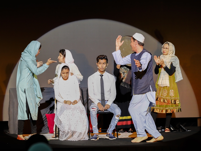 The main event for the night was a theatre performance on the topic of child marriage, as performed by refugee members of the Parastoo Theatre. The play tells the story of a 12 year old girl named Nazanin who was forced into early marriage as repayment of her father’s gambling debts. To encourage discussion among audience members, the performers use the ‘Theatre of the Oppressed’ methodology which gives spectators the opportunity to suggest solutions that could change the story outcome. One audience member reenacted a scene of how she, as a family member, would protect and defend Nazanin from the man who wanted to marry her.
